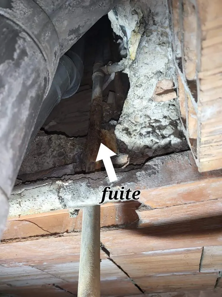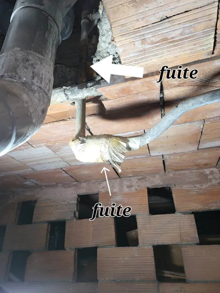 - Nous avons contrôlé la colonne d'arrivée d'eau froide commune - Fuite détectée sur la colonne entre le RDC et R-1.