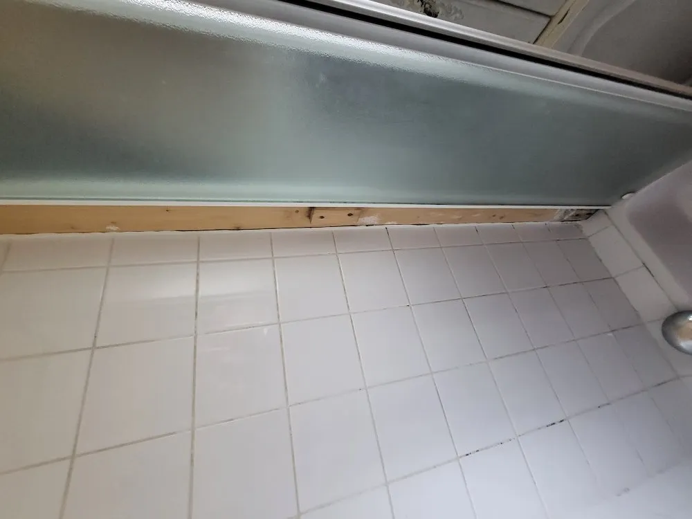 Nous avons constaté une fuite au niveau de la masquette carrelée de la douche du logement de Mme Amati