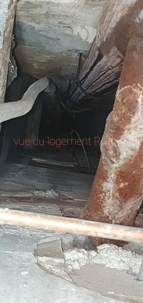 - Nous sommes rendus dans le logement du R+1 à droite, nous avons ouvert la trappe de visite – En ressort : de l'eau qui longe la colonne des eaux usées.