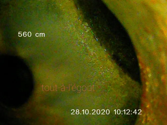 - Nous avons réalisé un passage caméra dans la canalisation des WC de l'étage supérieur et en ressort la présence d’une importante fissure au niveau du coude de la canalisation des WC à Marseille 13005.