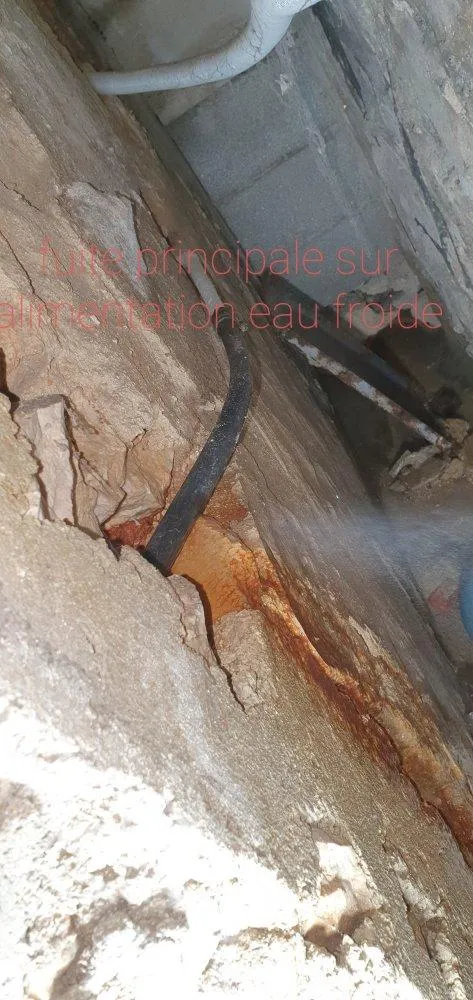 - Dans la buanderie, nos investigations nous ont permises de détecter la fuite principale - En ressort : La fuite principale est détectée sur l'arrivée d'eau froide située sur le mur mitoyen, celui-là même où les infiltrations sont détectées.